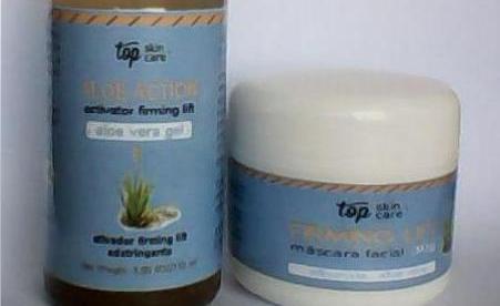 (Aloe Action + Firming Lift) - fórmula original da Ideal International Inc. (Dallas/Texas) - máscara facial (também serve para dar mais firmeza aos seios) para firmar e levantar a pele, atenuar e até eliminar marcas de expressão e rugas, atenuar e eliminar manchas, hidratar e estimular o crescimento de novas células. O Aloe Action é Aloe Vera pura, com resíduos da casca da planta, para ativar o Firming Lift e também para ser usado como Adstringente (não tem corante nem perfume). Além da Aloe Vera contém apenas conservante na quantidade mínima.